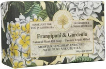 Uplifting and soothing, the magical, floral scent of frangipanis restores inner peace and tranquility while relaxing the body. The sweet fragrant gardenia eases stress and tension, promoting restful and satisfying sleep. French-style, triple milled bar Made in Australia. 200g/7oz bar.